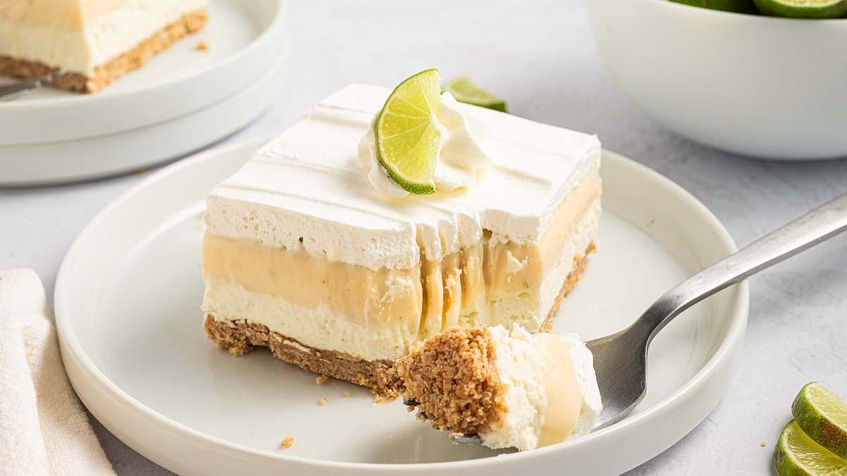 This dessert layers a whipped lime cheesecake filling onto a graham crust without needing any oven time. The flavor is bold but smooth, and the texture is airy yet firm. Once chilled, it slices cleanly and holds its shape. Itโ€™s an easy option for warm days or fast prep.