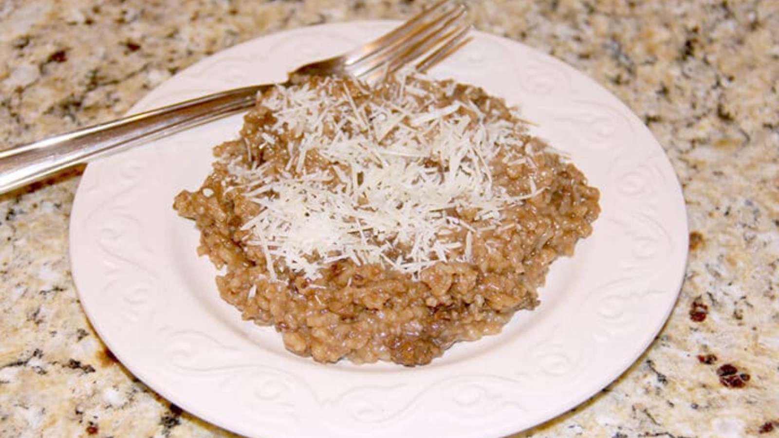 Nutty farro steps in for Arborio rice in this hearty, toothsome version. It cooks into a creamy texture while holding a little bite. Works well with add-ins or on its own. A fresh take on a classic.