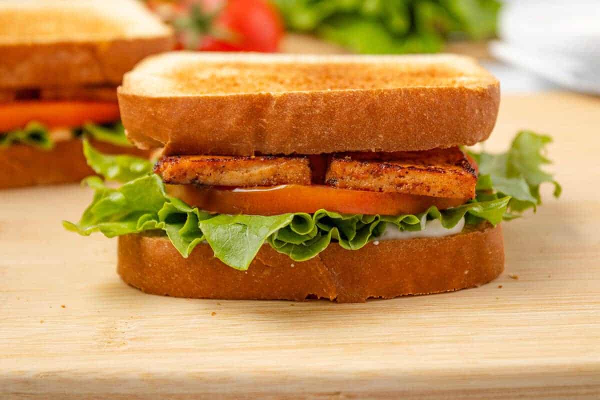 Crispy tofu replaces bacon in a classic BLT. Fresh lettuce and tomato add crunch. Quick to assemble. Each bite is savory and satisfying.