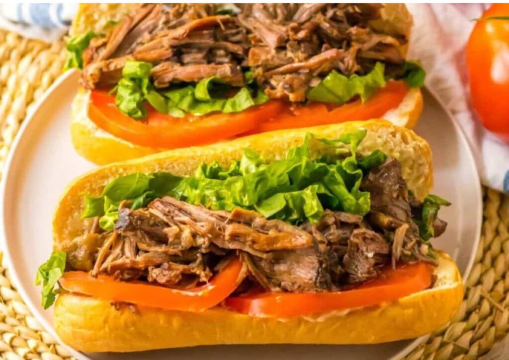 Tender roast beef slow-cooked and served on French rolls. Juicy, savory, and hearty. Quick if slow-cooked ahead. Each bite is satisfying.
