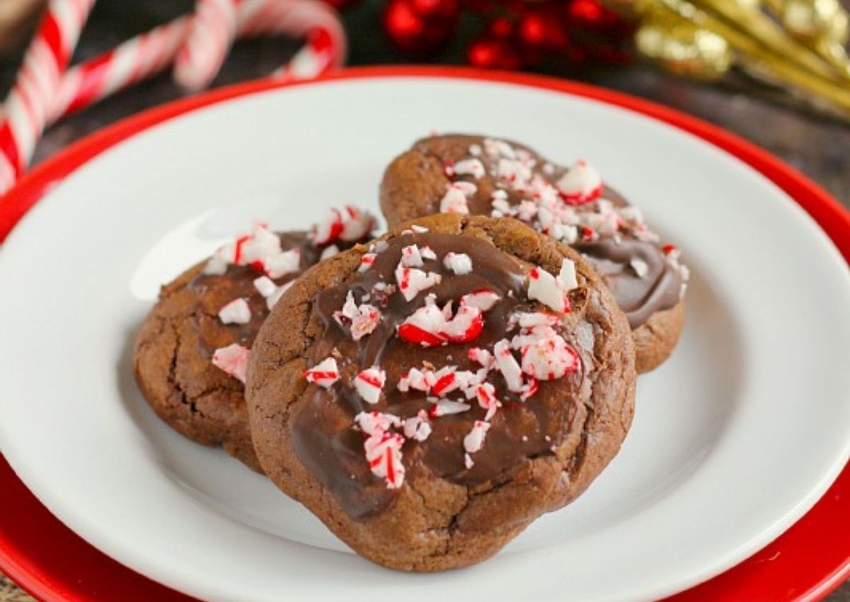 These cookies bring hot cocoa flavor into a soft, chewy bite. Dark chocolate tops each one, finished with crushed candy canes. The combination adds richness and crunch. Theyโre a cozy holiday favorite.