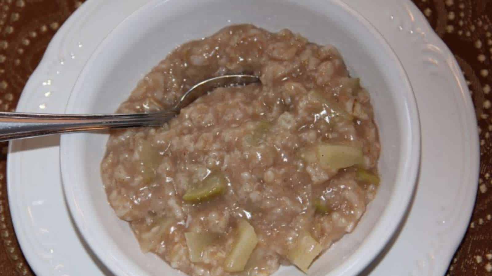 This stovetop oatmeal cooks with chopped apples and cinnamon for a naturally sweet, warm bowl. The apples soften without falling apart, and the oats turn creamy. Add nuts or a spoonful of nut butter for extra richness. A reliable, cozy classic.