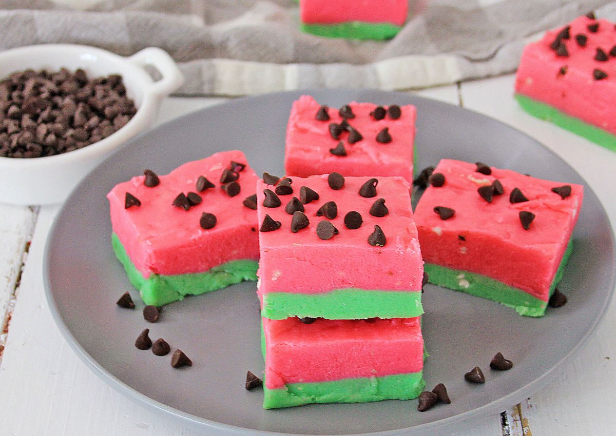 This colorful fudge layers pink, green, and mini chocolate chips to mimic the look and flavor of watermelon. The fruit flavor is subtle and sweet, usually made with candy melts or gelatin. Itโs eye-catching and playful, great for summer parties. Kids especially love the look of it.