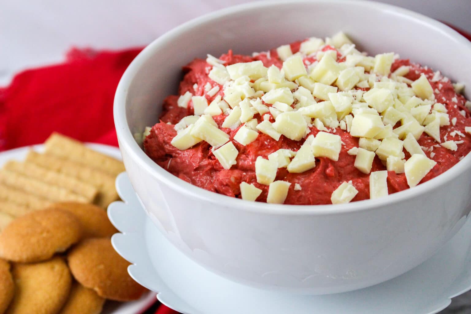 This creamy dip captures the flavors of red velvet cake in a spreadable treat. A rich, sweet base is accented with hints of cocoa and vanilla. It pairs well with cookies, graham crackers, or fruit slices. Red sprinkles on top enhance the festive look.