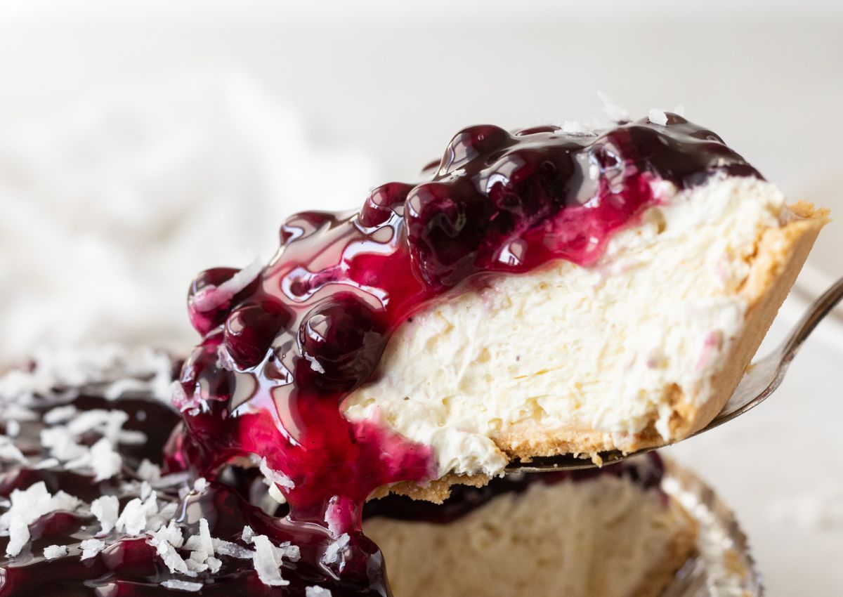 This No Bake Coconut Cream Pie is a quick, easy, no-fuss dessert recipe that is perfect for the holidays. A thick creamy coconut filling in a graham cracker crust, topped with luscious blueberry topping.