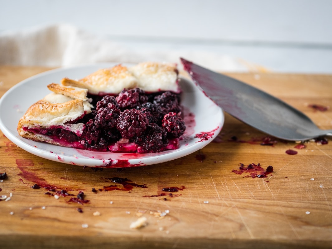 A rustic, free-form galette highlights fresh blackberries in a flaky crust. The edges are folded over to hold the juicy filling. Berries soften and caramelize during baking. Easy to make, yet elegant enough for any dessert table.