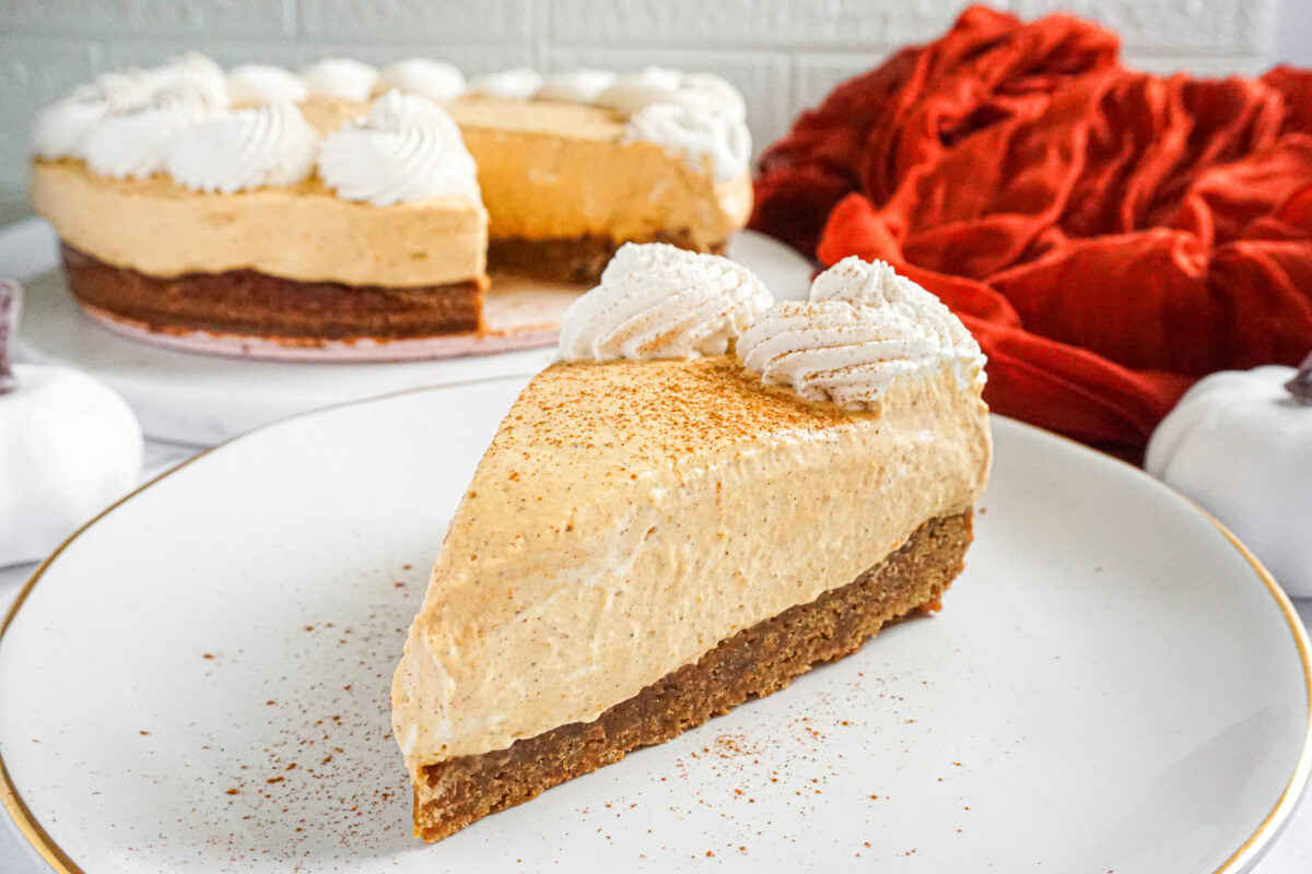 This cheesecake starts with a dense blondie base that adds structure and sweetness. The pumpkin layer is smooth and richly spiced. Cookie butter flavor runs through every bite. Once chilled, it slices cleanly and serves beautifully.