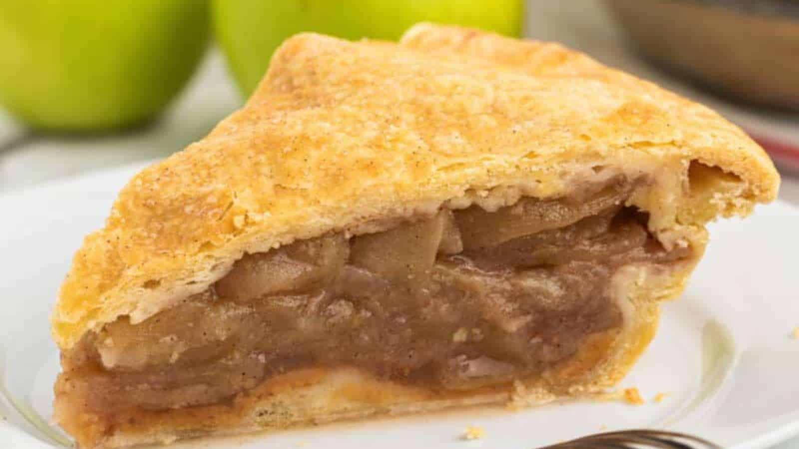 Two layers of pastry sandwich a sweet, bubbling apple filling. The top crust seals in the fruit and bakes golden and flaky. This is the kind of pie that feels like tradition in every bite. A slice of comfort on a plate.