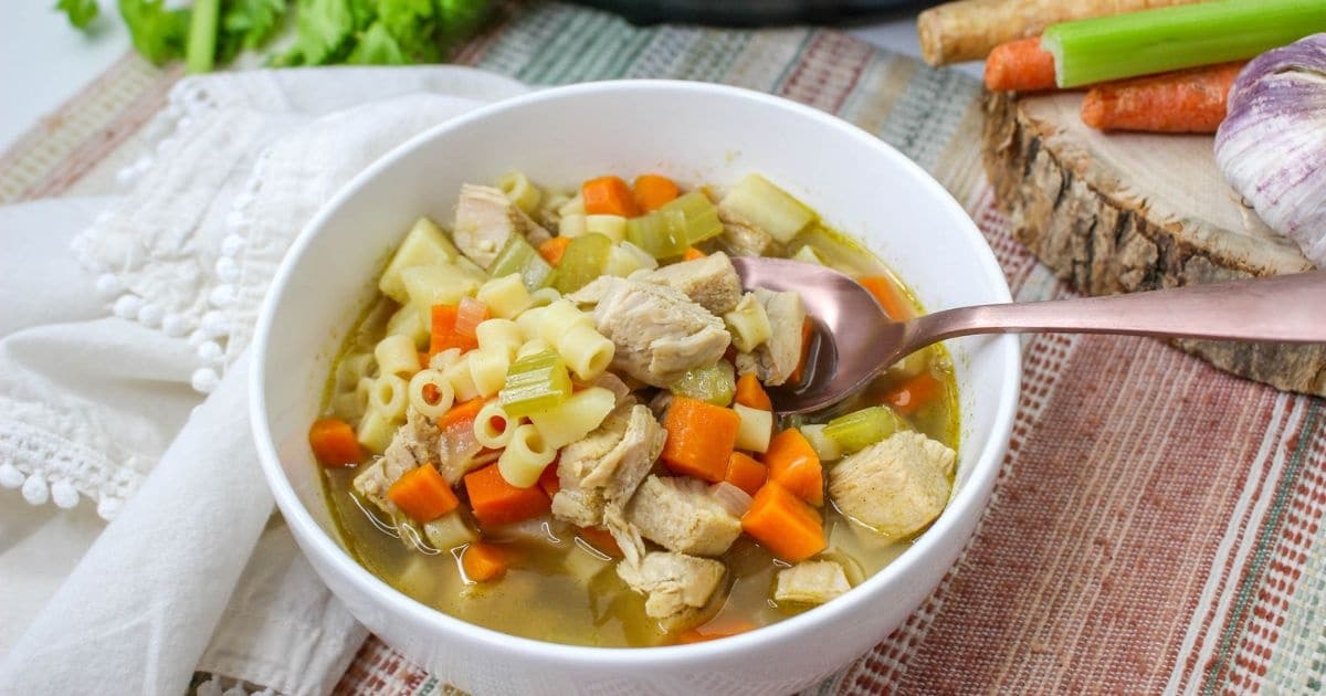 This soup is a great way to use leftover turkey. The Instant Pot brings everything together quickly. Vegetables and broth absorb the turkey flavor as they cook. It is warm, filling, and easy to make.