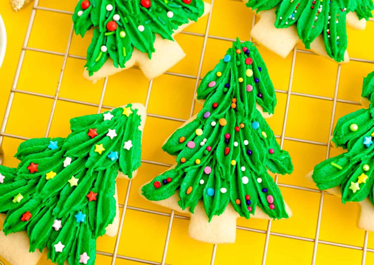 These homemade Christmas tree sugar cookies use a simple piping technique that creates tree-like branches. The design looks festive on a cookie tray while still being easy enough for beginners to do.