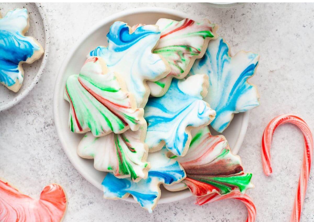 These pretty marbled sugar cookies look fancy but are super simple to decorate. You can get as creative as you want with the color combinations.