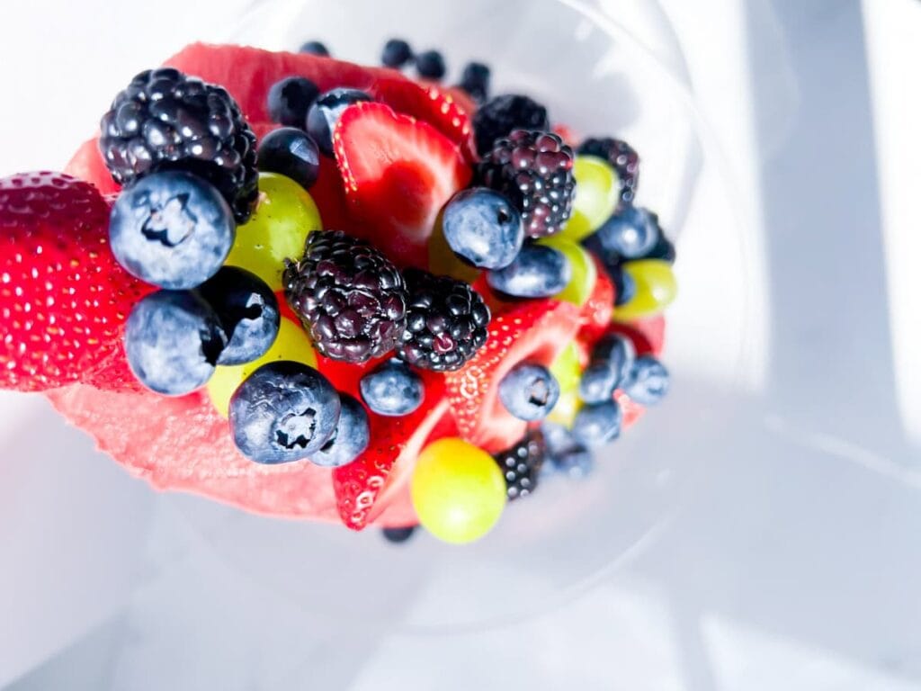 Creamy filling is layered over cookie crumbs in small cups. Fresh berries are mixed into the top layer. These set quickly in the fridge. They are easy to serve without slicing.