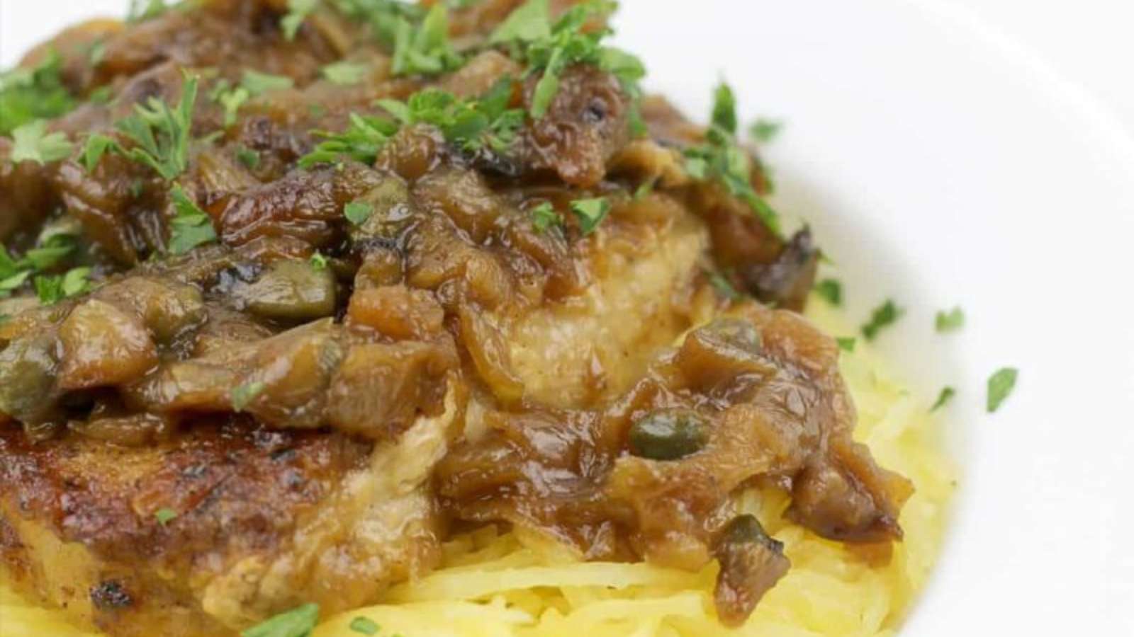These pork chops simmer with caramelized onions in a tangy white wine sauce. Capers add briny bursts of flavor that brighten the dish. The sauce is rich but balanced. Serve with rice or pasta to catch the juices.