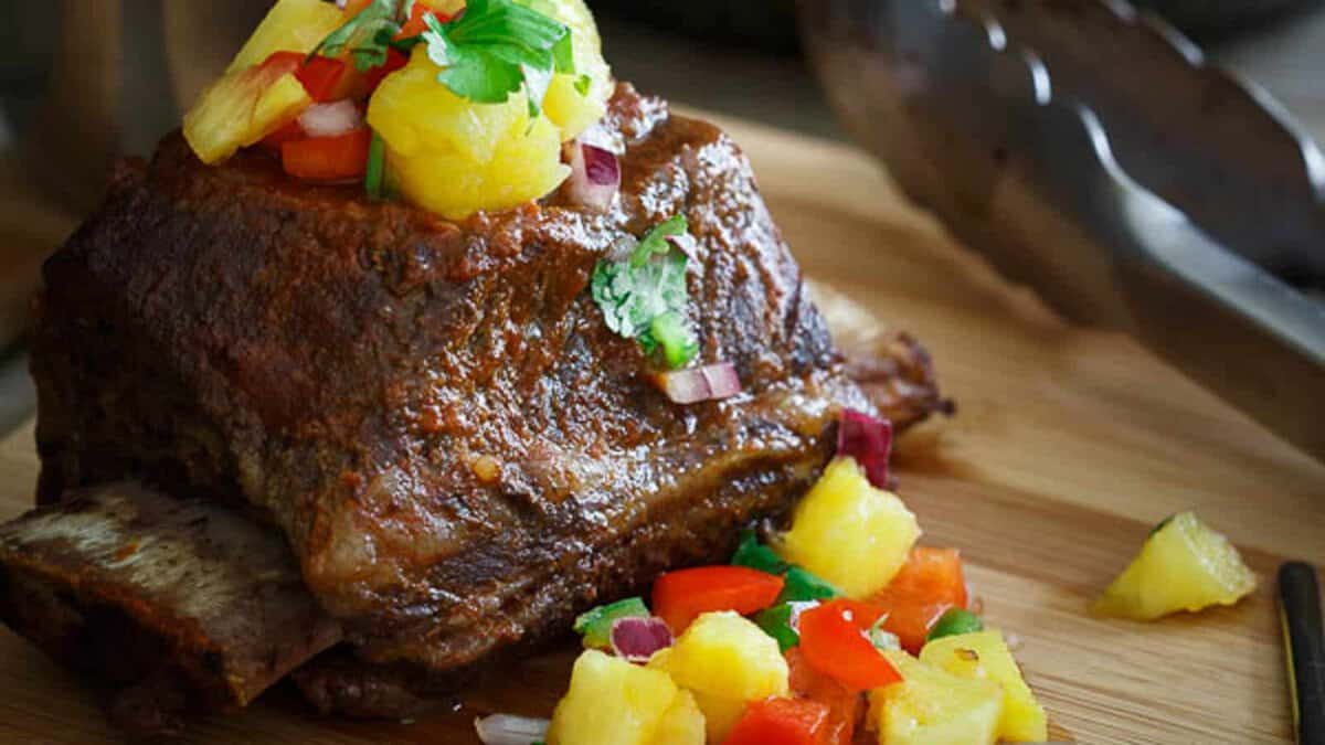These ribs soak in pineapple, soy, and garlic as they cook low and slow. The result is sweet, salty, and ultra-tender meat. The sauce thickens into a glaze as it finishes. A tropical twist on classic ribs.