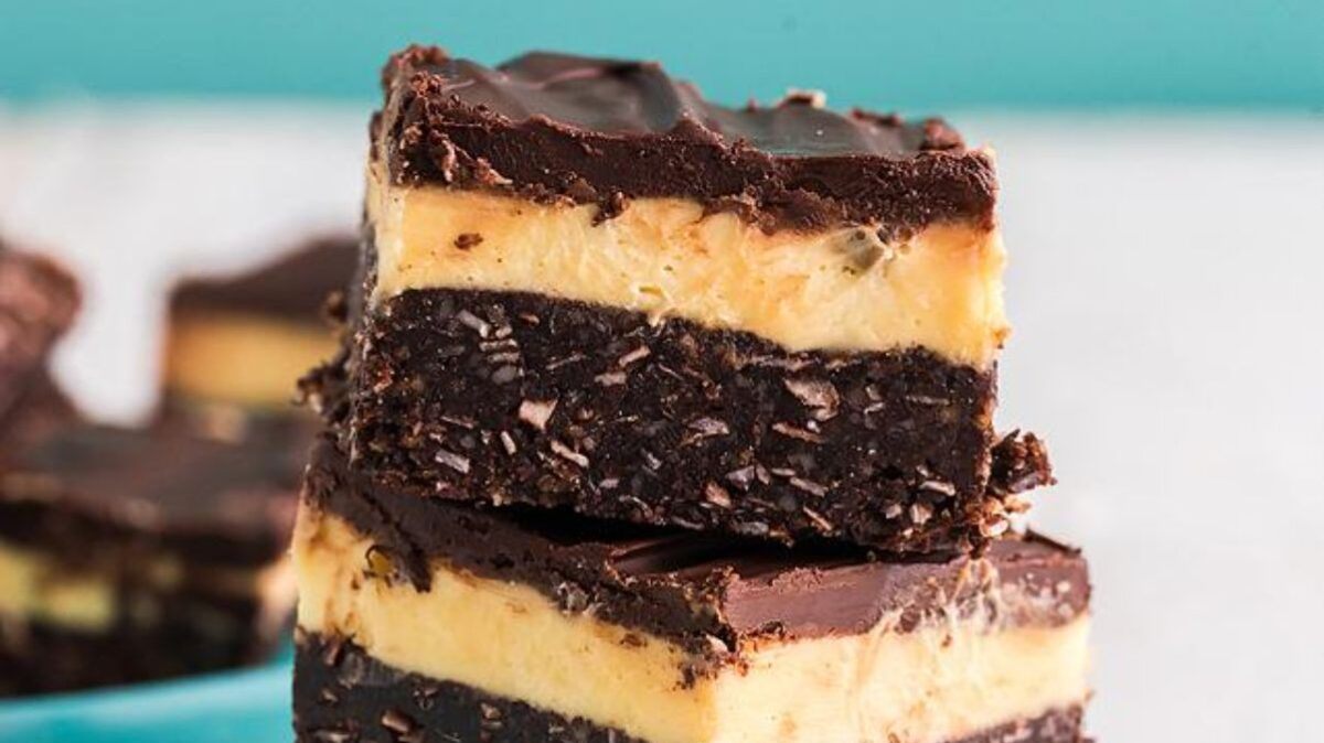 A classic Canadian no-bake dessert, these have a graham-coconut base, custard middle, and chocolate topping. The layers hold firm but melt in your mouth. They’re rich, sweet, and best served cold. No oven needed.