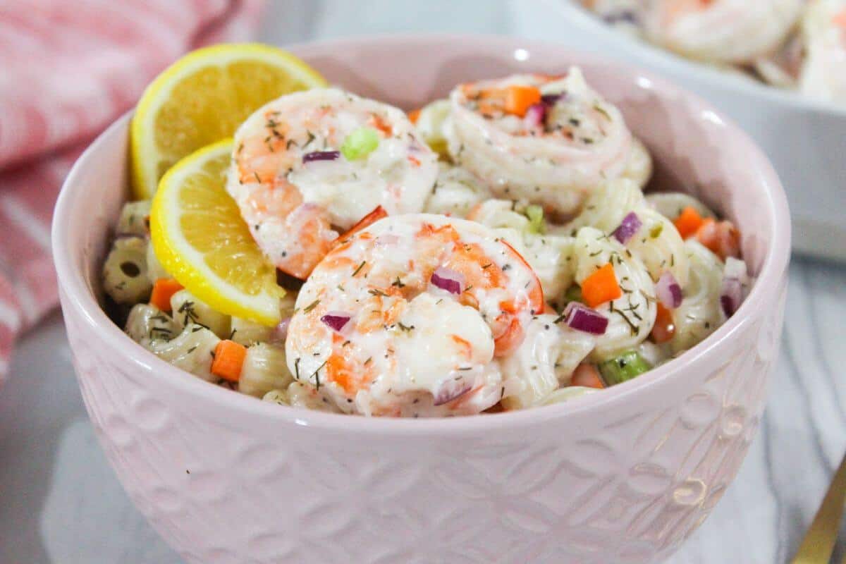 Shrimp are combined with pasta and a creamy dressing. The salad stays chilled and flavorful. Each bite has a mix of textures from shrimp and pasta. It is easy to prepare ahead of time.