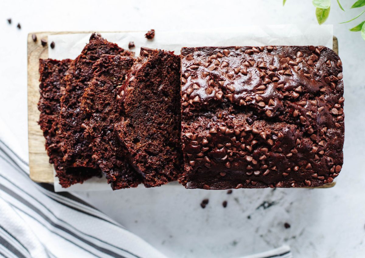 Cocoa powder combined with chocolate chunks intensifies chocolate flavor. Zucchini keeps the loaf moist. The bread has a tender, slightly fudgy texture. It is perfect for chocolate enthusiasts.