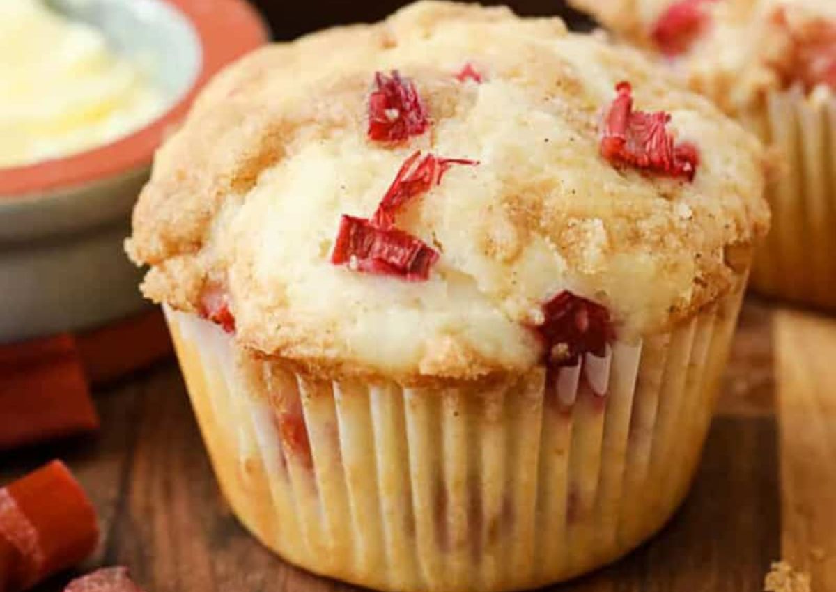 These Rhubarb Muffins have chunks of rhubarb in tender muffin topped with a cinnamon-spiced crumble topping.
