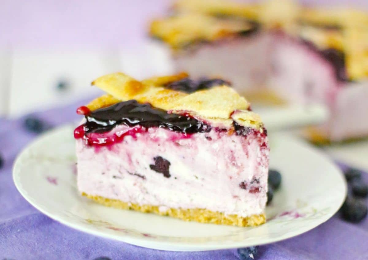 This mashup layers a cheesecake filling into a pie crust, topped with a muffin-style crumb and blueberries. Itโs creamy, cakey, and rich all at once. Each bite gives you a bit of everything. One of those bakes that feels like three desserts in one.