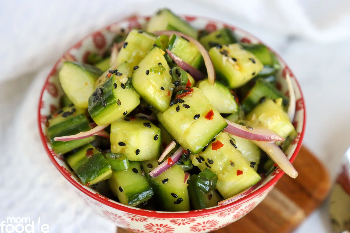 Cucumbers and tomatoes are tossed in a tangy, Asian-inspired dressing. The texture is crisp with juicy bursts from the tomatoes. Soy, vinegar, or sesame adds depth. Served chilled for maximum freshness.