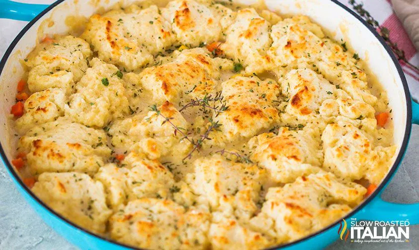Skillet Chicken Pot Pie Recipe with Easy Biscuits
