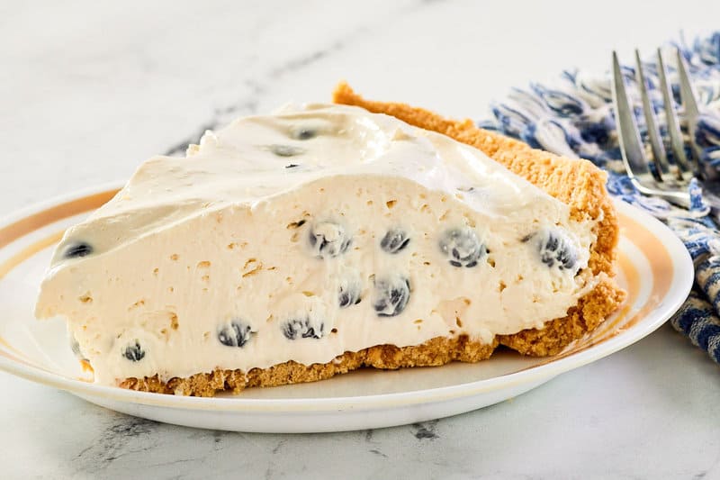 This pie sets up in the refrigerator without baking. The filling stays smooth and creamy. Blueberry flavor runs through each slice. The crust provides a firm base.
