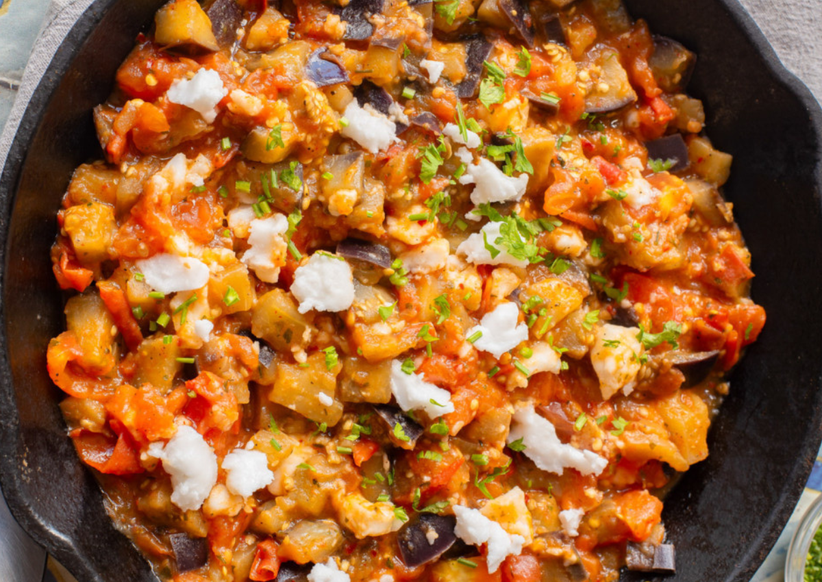 Chunks of tomato and eggplant cook down into a saucy, rich mix thatโs great with bread or pasta. The eggplant gets tender and soaks up all the flavor. Garlic and herbs give it lift. A great option when you want something meatless but filling.