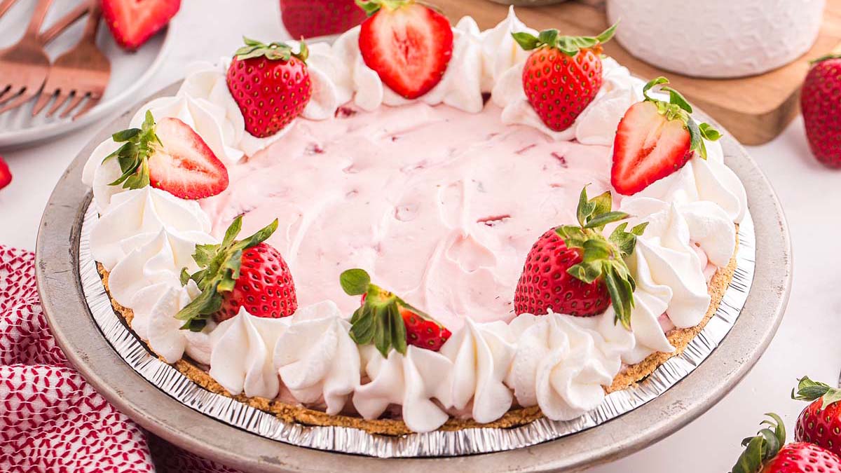 This pie blends strawberries with a creamy whipped topping in a crisp crust. The filling is smooth and light. Slices show bright pink color from the berries. It’s simple to make and easy to serve chilled.