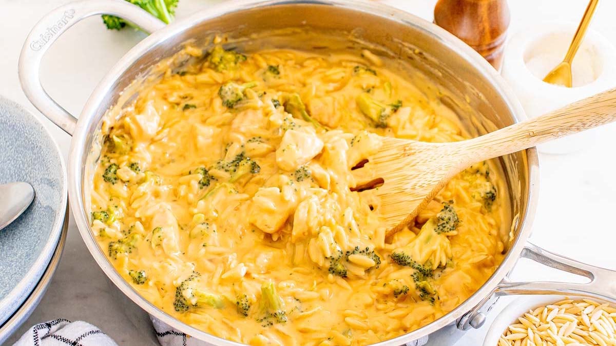 Get the Recipe: Cheesy Chicken Broccoli Orzo
