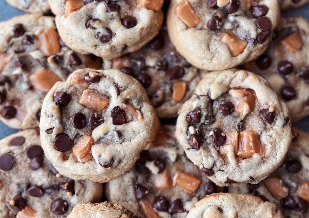 Caramel and Chocolate Chip Cookies . Photo credit: Bake with Jamie.