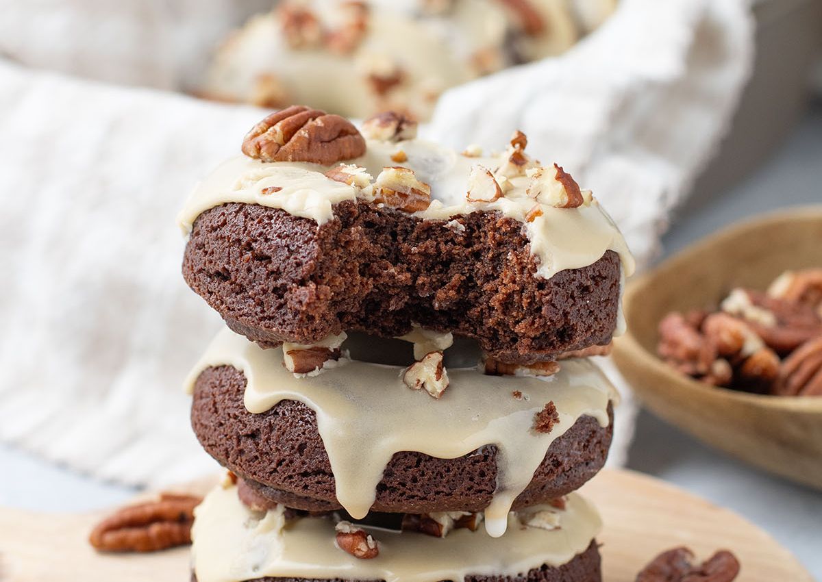 If you like brownies and donuts, then I have the perfect recipe for you! Caramel Pecan Brownie Donuts are basically turtle brownies you can eat for breakfast, and what could be better than that? The fudgy chocolate base tastes like an actual brownie, and then you have a sweet caramel icing dripping down the sides and crunchy pecans on top.