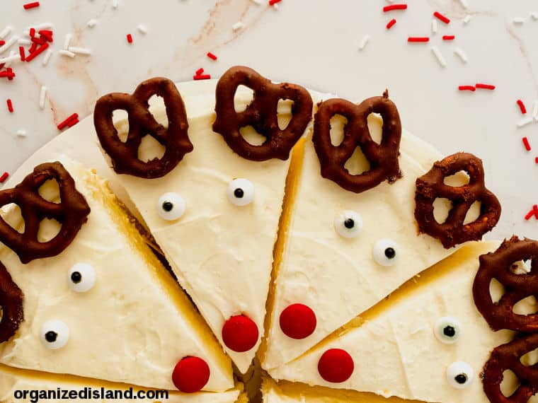 This no-bake reindeer cheesecake keeps things easy while still looking impressive. A creamy, light cream cheese filling sits on a buttery graham cracker crust, making every bite rich but not heavy. Finished with festive decorations, itโs a fun holiday dessert that comes together without turning on the oven. Get the Recipe: Reindeer Cheesecake