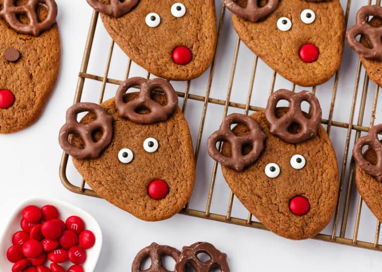 Soft, chewy gingerbread cookies get a festive upgrade with adorable reindeer faces. Warm spices and classic holiday flavor make these cookies a seasonal favorite. Theyโre fun to decorate and even better to enjoy with a mug of hot cocoa.